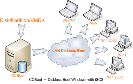 Ccboot Server üzerinden bilgisayarların disksiz boot olmasını sağlayan bir programdır? Ccboot kullanmaya başlayarak Elektrik, Harddisk, Virüs ve bakım masraflarından kurtulmuş olursunuz. Server bilgisayarınızda yaptığınız güncelleme, Bakım, Vb değişiklikler anında terminal bilgisayarınızda aktif olmuş olur. Neden İhtiyacım var? Uygulamalara gelen güncellemeler, Windows güncellemeleri, diğer yazılım güncellemeleri CCboot'a kadar bu güncellemeleri tek tek yapıyordunuz buda size elektrik masrafı bakım masrafı, zamandan kaybı, Geç saatlere kadar iş temposu na sebep oluyordu bu problemlerin tamamını ortadan kaldırmak için CCBoot adlı programa ihtiyacınız var. CCBoot adlı program sayesinde gün içerisinde sadece bir bilgisayar üzerinden yapılan değişiklik bütün bilgisayarlarınızda anında aktif olacak buda size zaman ve para tasarrufu sağlayacak. CCBoot Özellikleri PXE önyükleme, Windows Server 2008 / 2012 Üzerinden Windows XP, Windows 2003, Vista, Windows 7 , Windows 8, Windows 10 iSCSI depolama / Sanal Disk desteği DHCP, gPXE, TFTP, iSCSI Target içinden İmaj Kalıbı Yükleme. iSCSI önyükleme için bir hepsi bir arada çözüm var. Fiziksel sürücü, Sanal sürücü ve VMWare disk dosyası destekler. Pxe önyükleme sunucusunda VMDK biçimi, VHD biçimi ile destekler. Client bilgisayarı yeniden başlatıldığında ilk haline geri gelir. Client bilgisayarı yeniden başlatıldığında istenirse değişiklikler kayıt edilebilir. İşletim sistemi okuma ve yazma işlemi için önbellekleme destekler Boyutu büyük disklerde hızlı erişim için ram önbelleği destekler. Sürekli hızlı erişim için ssd önbelleği destekler. Birden çok sunucu, birden çok ethernet kartı ve yük dengeleme destekler. Birden çok harddisk desteği, birden çok sanal disk destekler. Müşteri bilgisayarındaki yazma işlemleri için ssd önbelleği destekler. Farklı anakartları tek imaj kalıbından çalıştırmanızı sağlar. Vhd uzantılı sanal disk kalıplarını destekler. Arşiv diski, Sanal disk olarak 64 TB Kadar destekler. Kayıtlı ethernet kartı driverları dışında bilgisayarınızdaki tanımlı driverları kullanabilir. Sabit disklerin dışında, CD/DVD rom, iso kalıbı, Vhd, VMDK sanal disklerinide destekler. Tüm bilgisayarlar için tek merkezden kontrol sağlar. Sunucu Bilgisayar Gereksinimleri 1. Windows Server 2008 / 2012 işletim sistemi 2. Tüm Disklerin "Varsayılan Ayırma Boyutu" 32k olarak biçimlendirilmesi gerekir. 3. Son hizmet paketleri sunucu üzerinde yüklü olmalıdır. Client Bilgisayarı Gereksinimleri (32bit & 64bit) 1. Windows Xp, Windows 7, Windows Vista, Windows 7, Windows 8, Windows 10 işletim sistemi 2. 10/100/1000 onboard ethernet kart veya PXE 2.x desteği olan harici ethernet kartı. 3. Son Güncelleme paketleri yüklü olmalıdır. Tavsiye Edilen Sunucu Özellikleri 35 Cliente Kadar i3/i5 İşlemci, Sata 6gb/s port anakart, 8/16 gb ram, 1 adet 240 gb ssd, 2 adet 120 gb ssd, 4 TB Harddisk 70 Cliente Kadar i3/i5 İşlemci, Sata 6gb/s port anakart, 16/32 gb ram, 4 adet 240 gb ssd, 4 TB Harddisk 150 Cliente Kadar 70 bilgisayara kadar gerekli donanımdan 2 Adet ile yük dengeleme tavsiye edilir. DİSKLESS SİSTEM ŞEMALARI